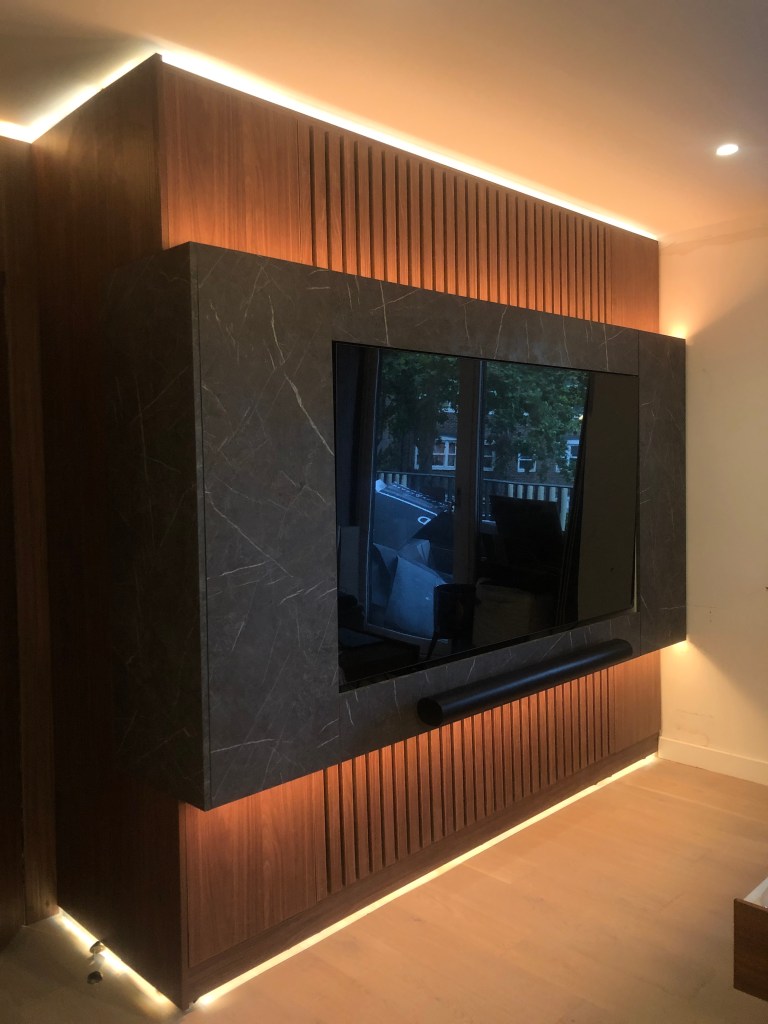 Installaion of Sonos Bar. Use of a laser level ensured a perfect mount.