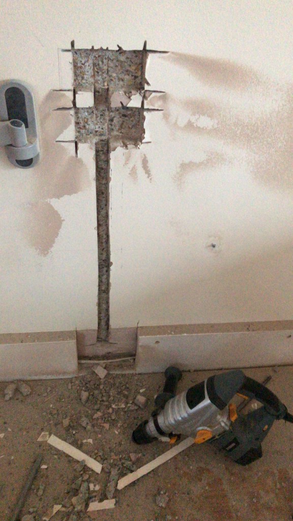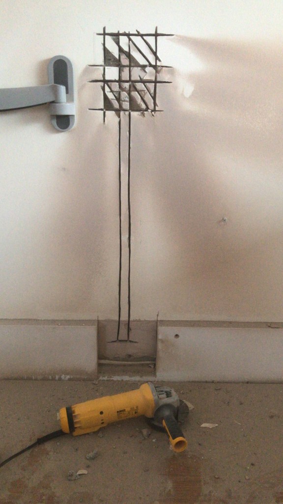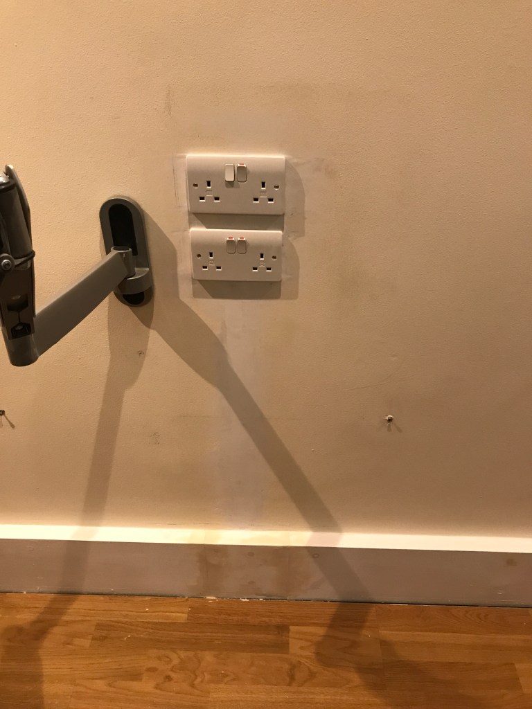 Situation: The client wanted two additional sockets behind their TV. The wall was made of an extremely tough concrete.